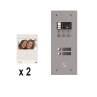 Kit vidéo couleur 2 appels BUS 2 fils G2P comprenant :• 1 Platine à encastrer NEXA aluminium 2 BP• 2 Moniteurs couleur mains-libres 4.3'' ART4HLITE (BM) • 1 Alimentation G FA G2P• Extensible à 4 moniteurs et 4 platines