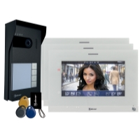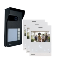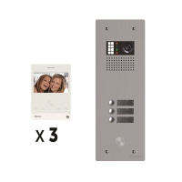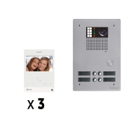 Kit vidéo 3 appels BUS G2P : • Platine monobloc alu GTV62/103 1 rangées 3 boutons• Groupe vidéo couleur G EL 632 G2P• Alimentation G FA G2P• Répartiteurs G D4L G2P• Moniteurs vidéo couleur G ART 4 H/XLITE