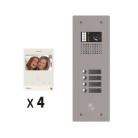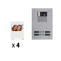 Kit vidéo 4 appels BUS G2P : • Platine monobloc alu GTV62/204 2 rangées 4 boutons• Groupe vidéo couleur G EL 632 G2P• Alimentation DIN 32V G FA G2P• Répartiteurs G D4L G2P• Moniteurs vidéo couleur G ART4H/XLITE