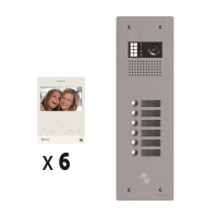 Kit vidéo 6 appels BUS G2P : • Platine monobloc alu GTV62/106 1 rangées 6 boutons• Groupe vidéo couleur G EL 632 G2P• Alimentation G FA G2P• Répartiteurs G D4L G2P• Moniteurs vidéo couleur G ART 4 H/XLITE