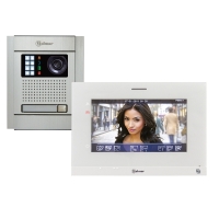 Kit vidéo couleur 1 appel BUS 2 fils G2P comprenant :• 1 Platine à encastrer NEXA aluminium 1 BP• 1 Moniteur couleur ML 7'' ART7H (BM + mémoire)• 1 Alimentation G FA G2P• Extensible à 4 moniteurs et 4 platines