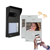 Kit vidéo couleur WiFi 1 appel BUS 2 fils G2P comprenant :• 1 Platine à encastrer NEXA aluminium 1 BP• 1 Moniteur ML 4.3'' WiFi ART4WH (Boucle M.+Mémoire)• 1 Alimentation G FA G2P• Extensible à 4 moniteurs et 4 platines