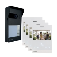 Kit vidéo 4 appels BUS G2P : • Platine monobloc alu GTV62/104 1 rangées 4 boutons• Groupe vidéo couleur G EL 632 G2P• Alimentation G FA G2P• Répartiteurs G D4L G2P• Moniteurs vidéo couleur G ART 4 H/XLITE
