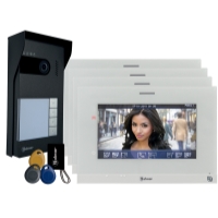Kit vidéo couleur SOUL 4 appels BUS 2 fils G2P comprenant :• 1 Platine saillie ZAMAC avec visière• 4 Moniteurs couleur ML 7'' ART7H (BM)• Contrôle d'accès (5 badges 2 tags)• 1 Alimentation• Ext. 4 moniteurs et 4 platines